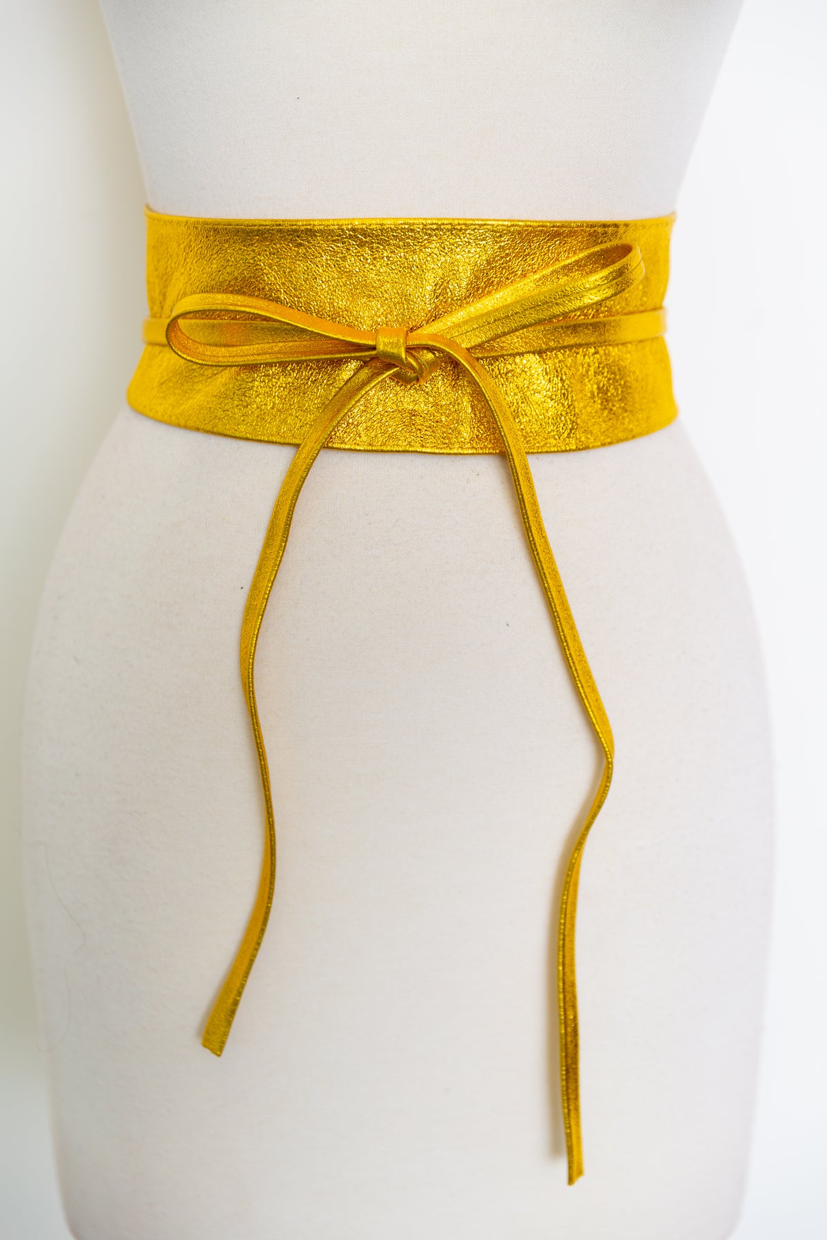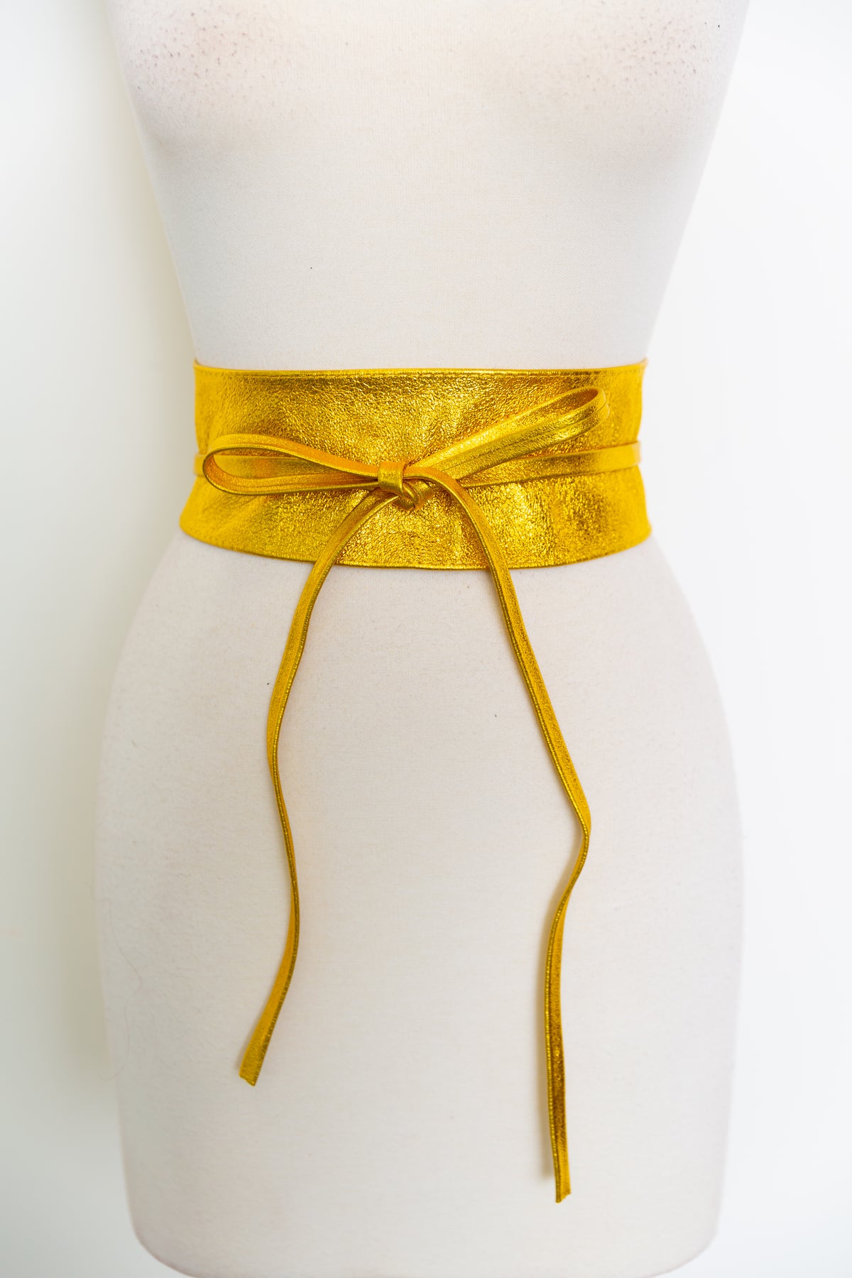 This beautiful metallic wrap style belt fits all sizes with a slight curve for a perfect fit. Made with gorgeous Italian leather. Fits all sizes