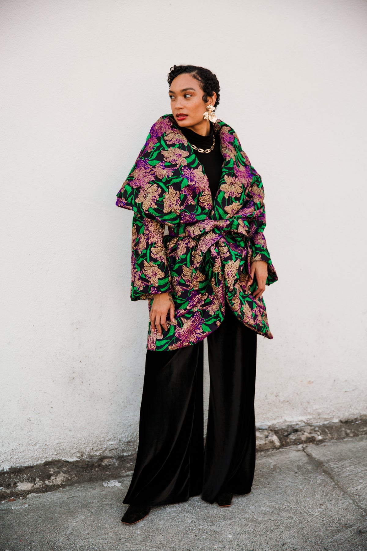 • byVINNIK Cocoon Coat in Premium Jacquard (contains metallic)