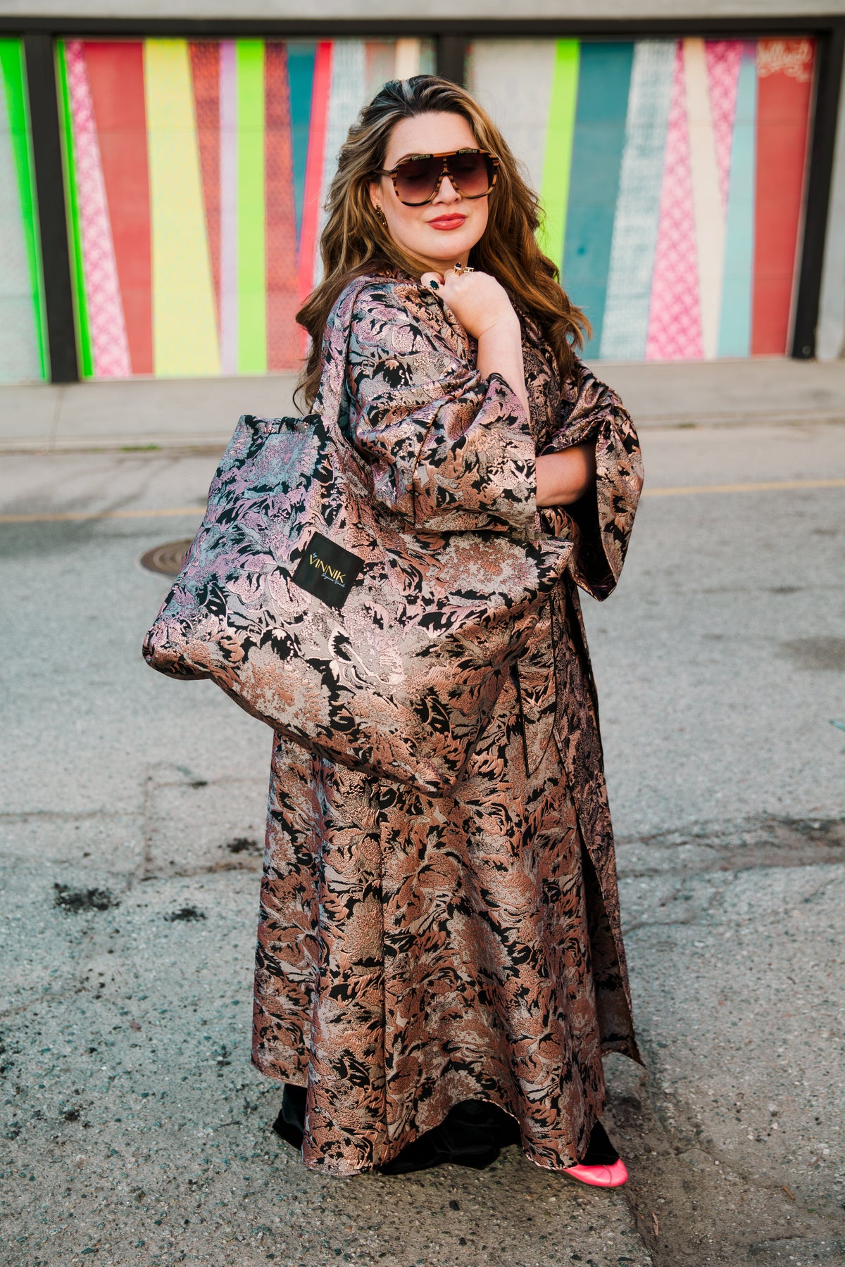 While still performing, she began upcycling concert gowns and selling vintage through Shoperatic, the fashion marketplace she co-founded to empower women in classical music. This pivot led to byVINNIK her LA-made, editorially driven ready-to-wear label beloved for its opulent textiles and innovative flexible sizing.