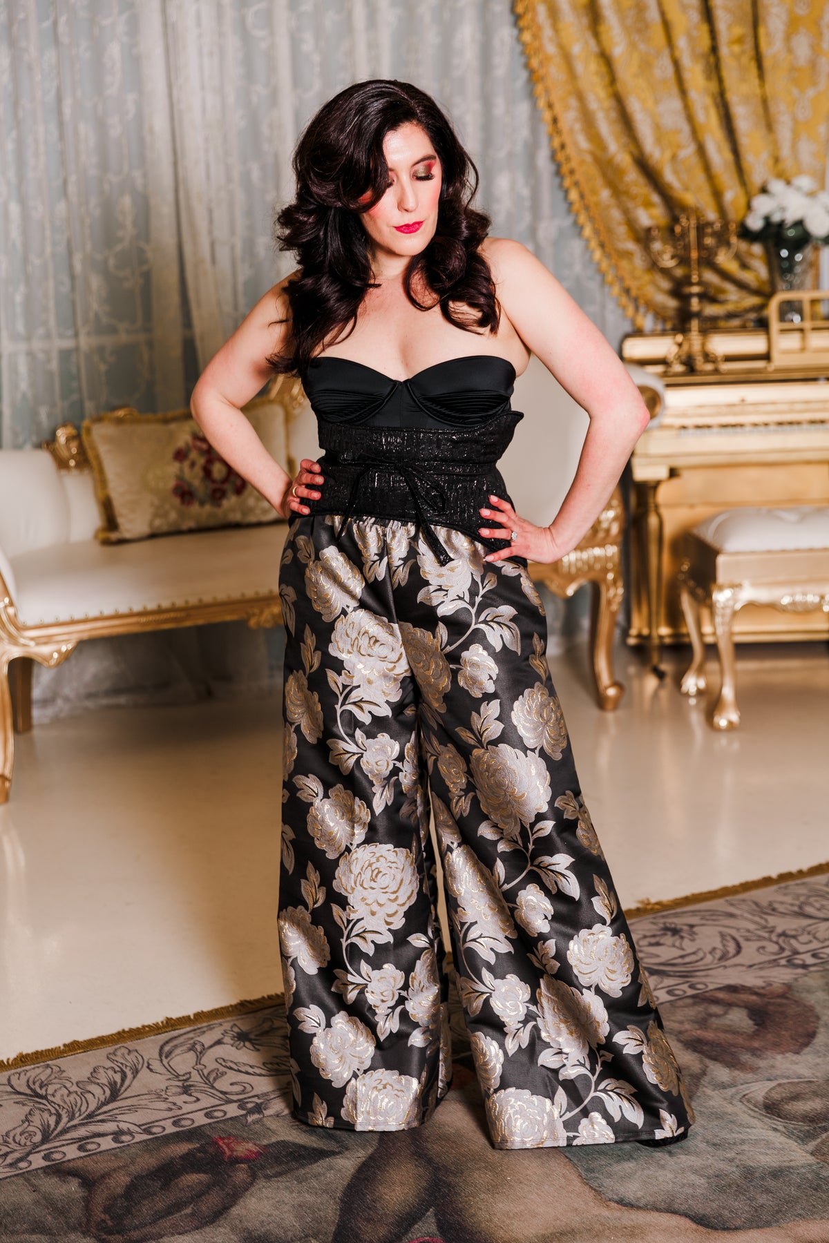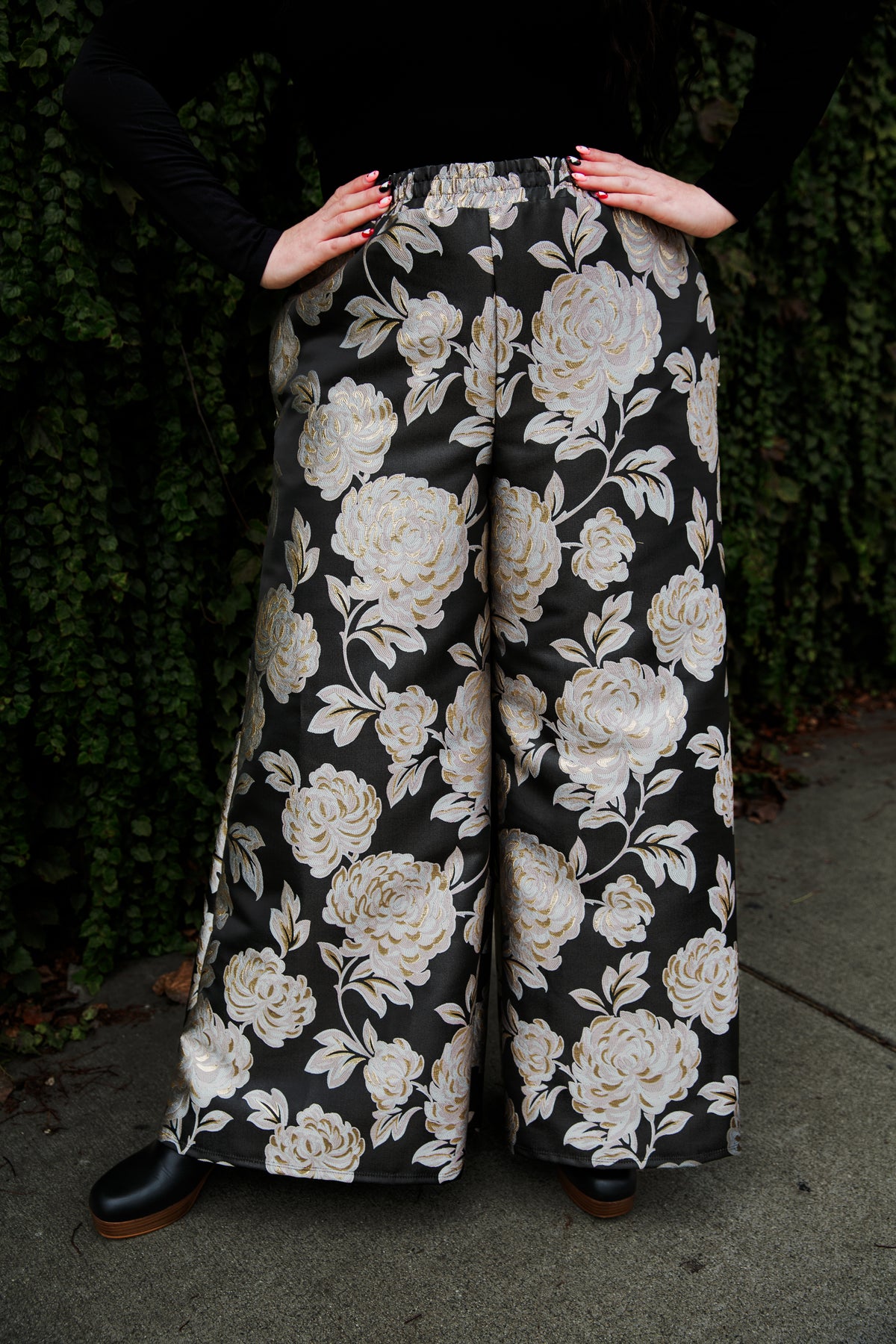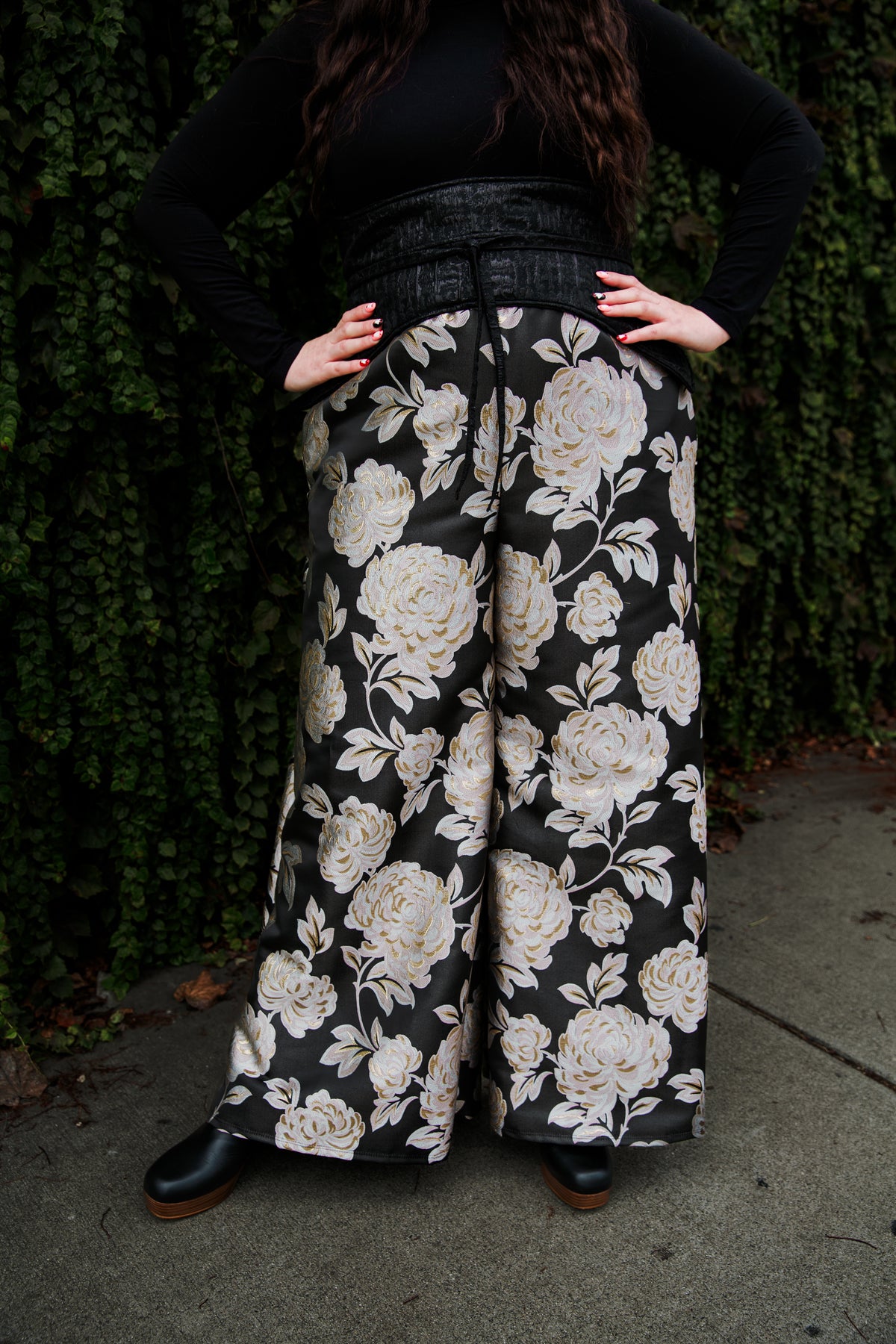 Get ready to inspire! The wide leg palazzo pants are loose fit with pockets and an elasticized waistband with our luxurious jacquard and soft modal lining. We love wearing them solo or as part of a fully matching ensemble in this gorgeous jacquard.