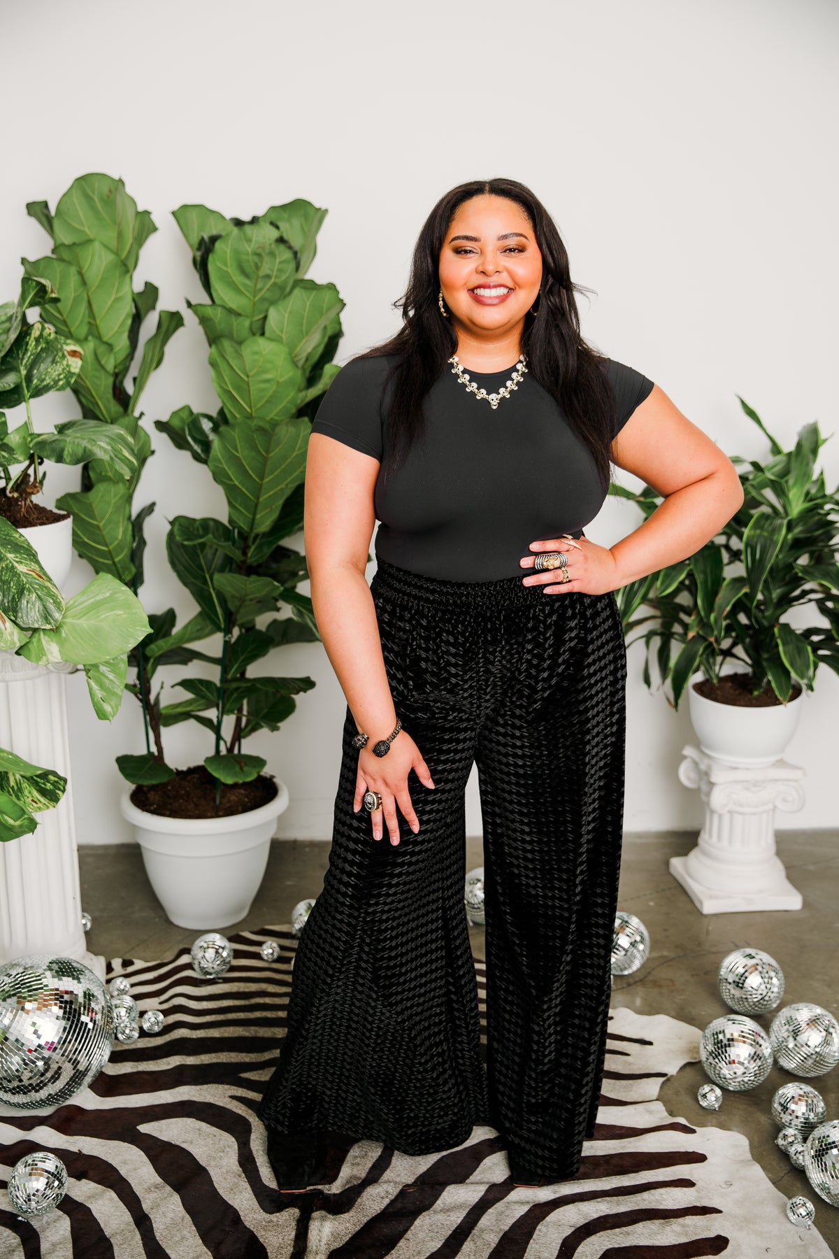 Get ready to inspire! The wide leg palazzo pants are loose fit with pockets and an elasticized waistband with soft stretch velvet fabric. They won’t shrink or lose their shape. They are the perfect lounge to luxe pants! Pair them with your favorite mix and match outerwear.