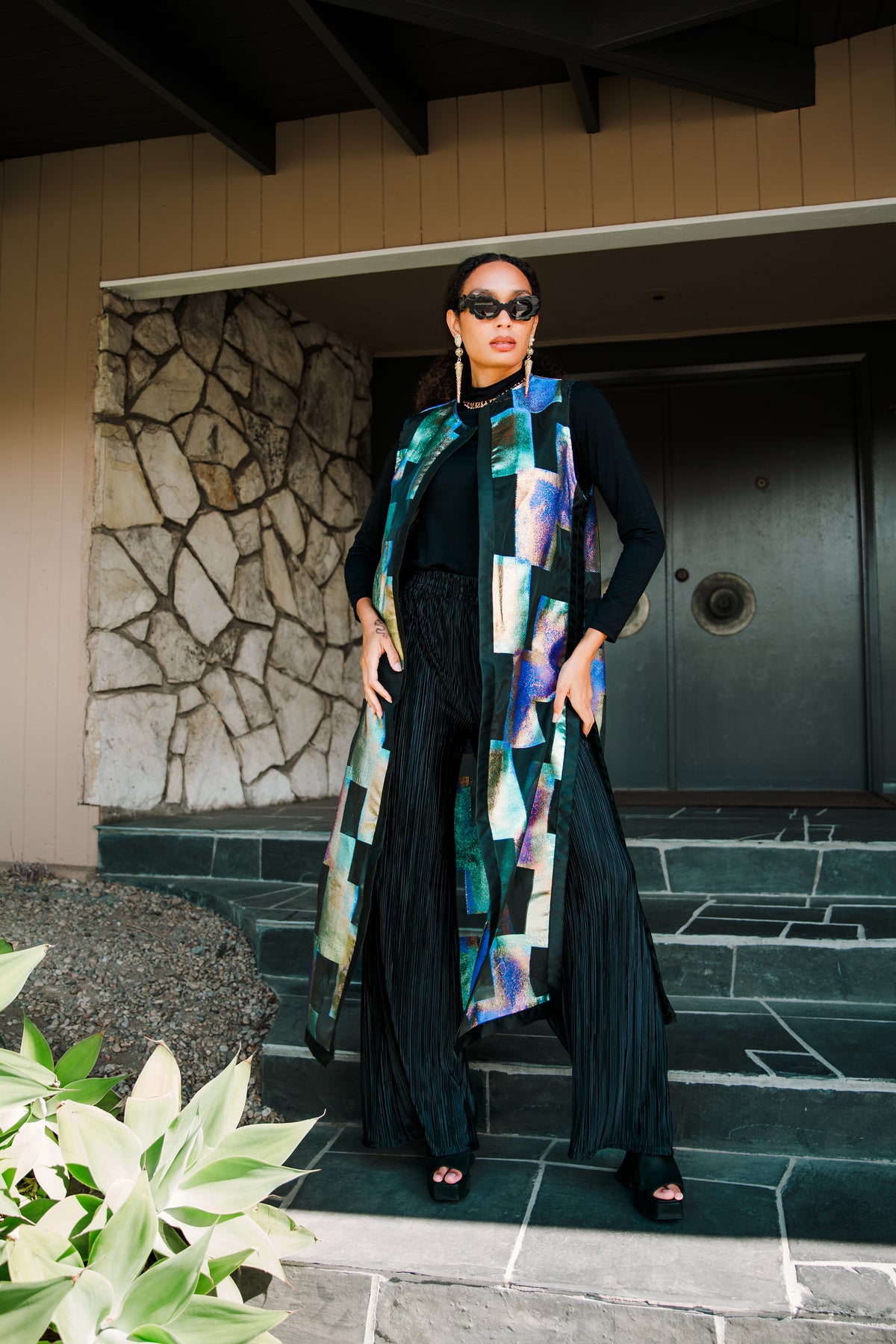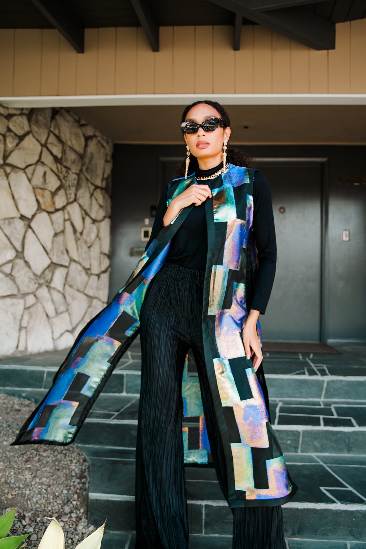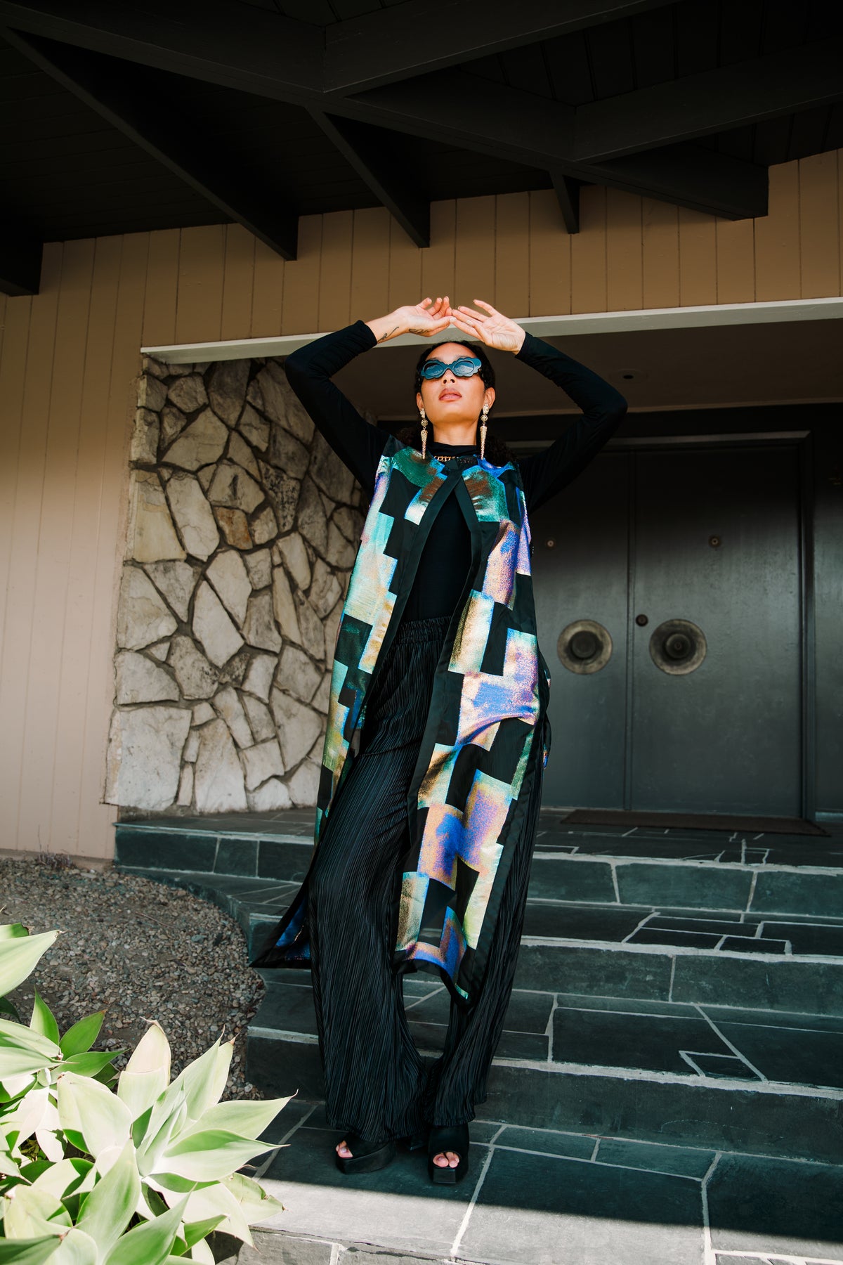 The byVINNIK Berlin Duster isn’t just a layer—it’s a finishing move. Inspired by a vintage piece from Sara Duchovnay, it’s cut with sweeping volume and framed by a bold taffeta border that gives every look an edge. It's the Instant architecture look. It pairs effortlessly with dresses, wardrobe basics, or even the pieces you only feel comfortable in but need to elevate. One step, and suddenly you’re polished.