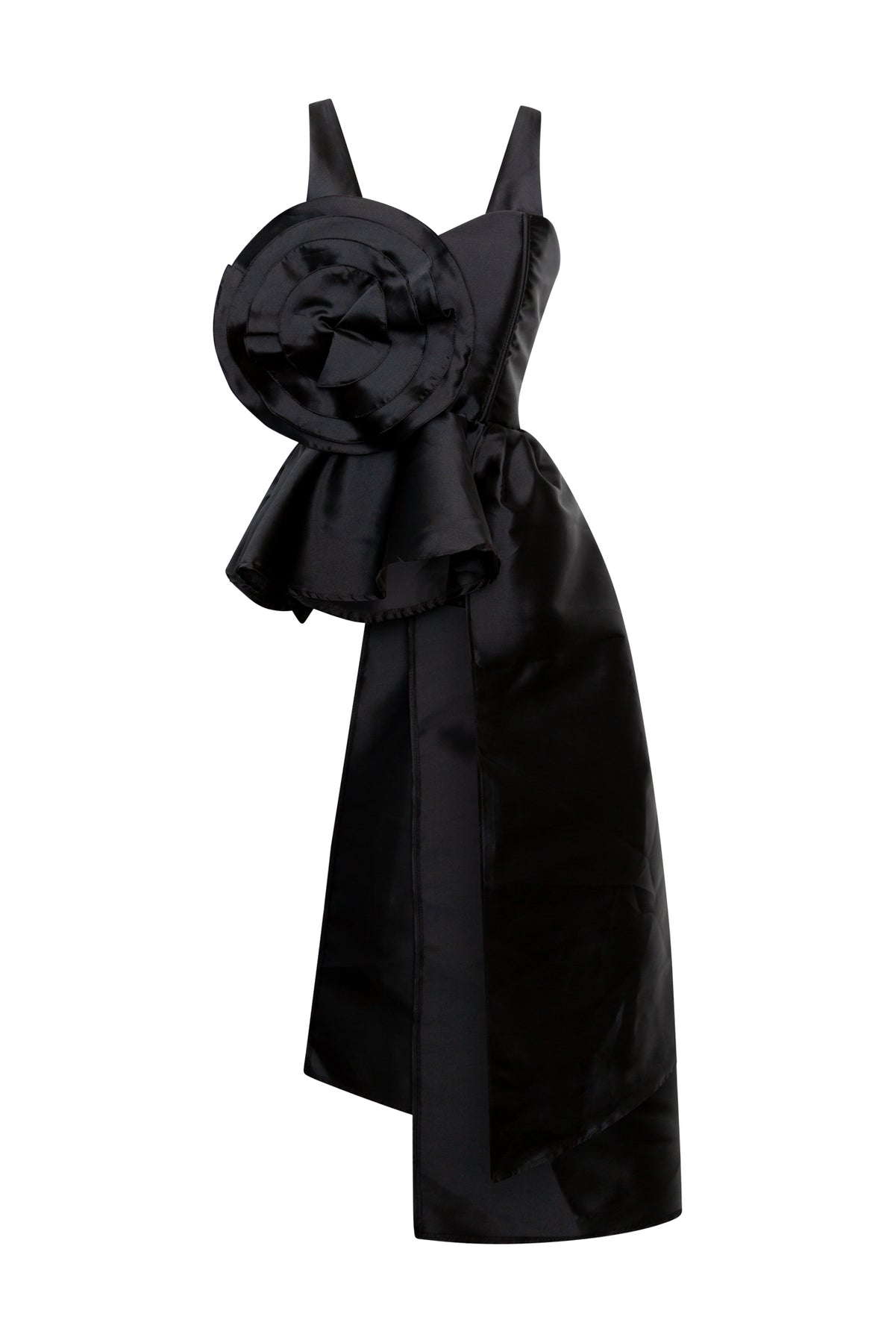- Dramatic asymmetrical silhouette