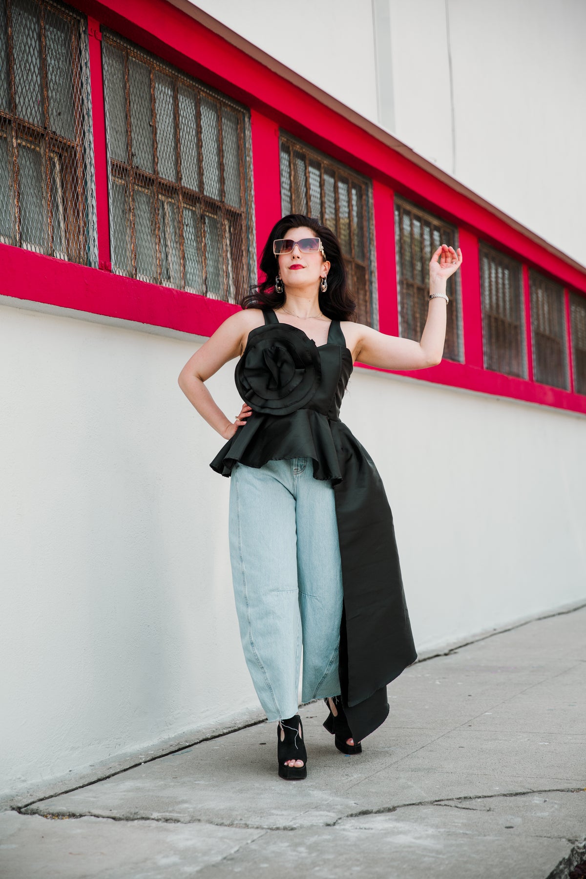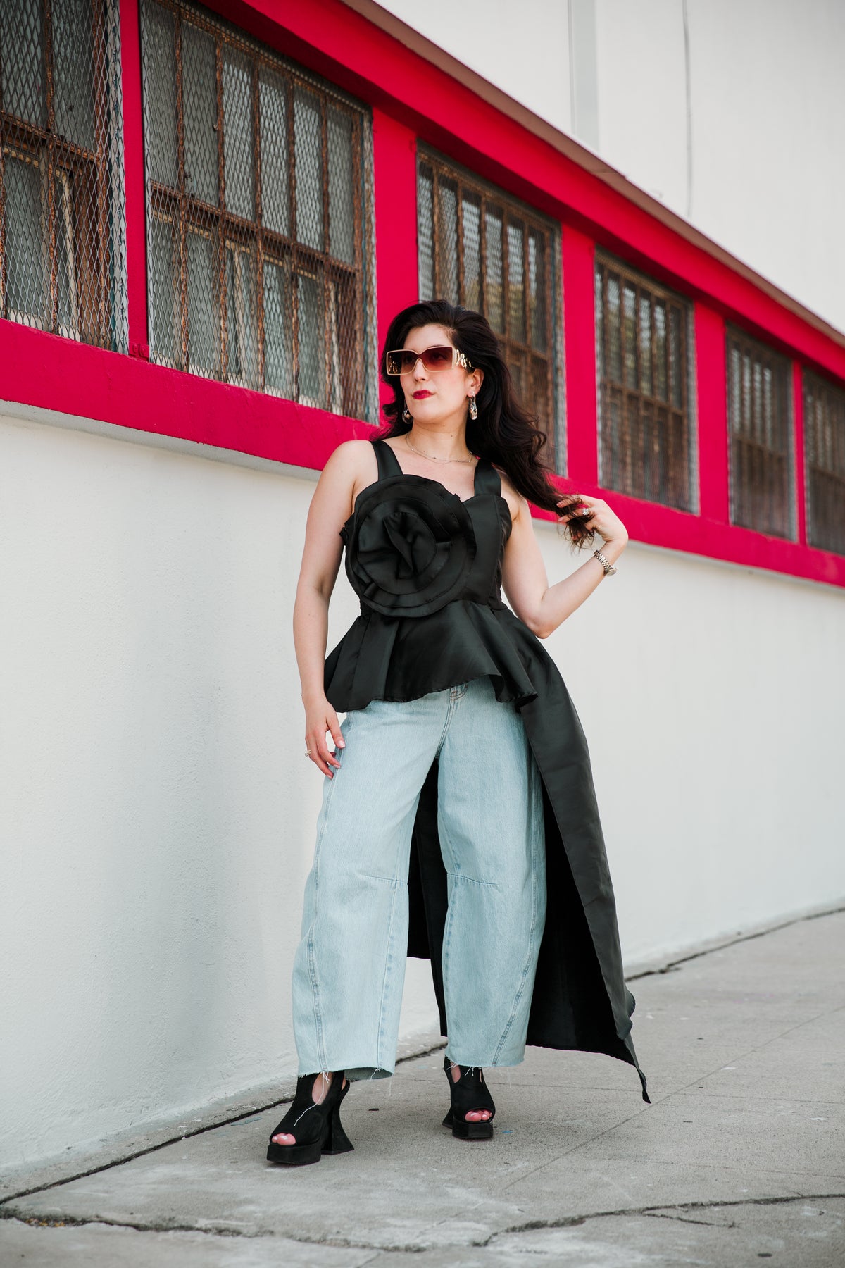A statement in structure, silhouette, and romance. The Fleur Peplum Top is a show-stopping piece unlike anything byVINNIK has designed before. Crafted in sculptural taffeta with a dramatic asymmetrical side-sweeping peplum, this top features a boned bodice with engineered elasticized shirring to offer form and flexibility. The sweetheart neckline flatters, while adjustable and detachable straps allow for multiple styling options. At its heart: an oversized, detachable flower, interchangeable with additional blooms (sold separately) to coordinate with your favorite byVINNIK pieces. Whether paired with a gala-worthy skirt or styled with modern separates, this top makes an entrance.