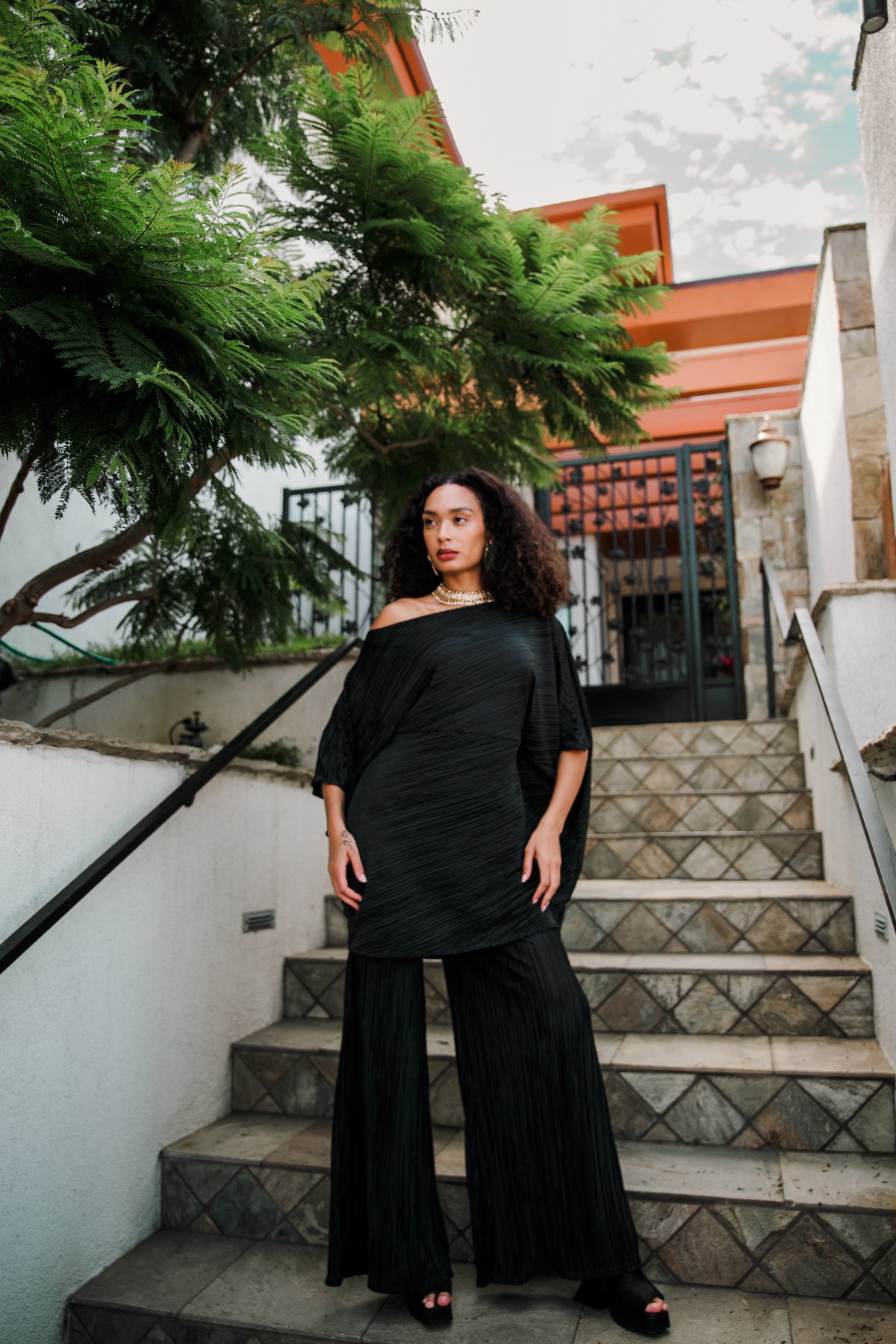 Pair with our Muse Pants for a chic, elongated silhouette or wear it solo as a mini tunic for nights that call for statement ease. Layer it over leggings or denim for everyday glamour.