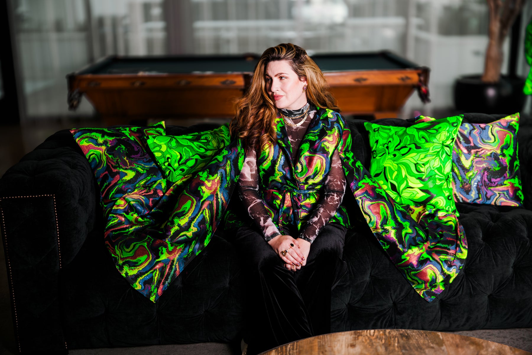 Her work has appeared on The White Lotus, RuPaul’s Drag Race, The Today Show, Access Hollywood, and multiple red carpets. byVINNIK has been worn by Jennifer Coolidge, Natasha Rothwell, Paula Pell, J. Harrison Ghee, Alex Newell, Renee Lawless, Karen Slack, Dulcé Sloan and numerous public figures—featured in Vogue, InStyle, The Wrap, and The Hollywood Reporter as one of the “Best Sustainable Looks of This Red Carpet Season.” She recently had three garments featured in Taylor Swift’s “The Fate of Ophelia” music video.