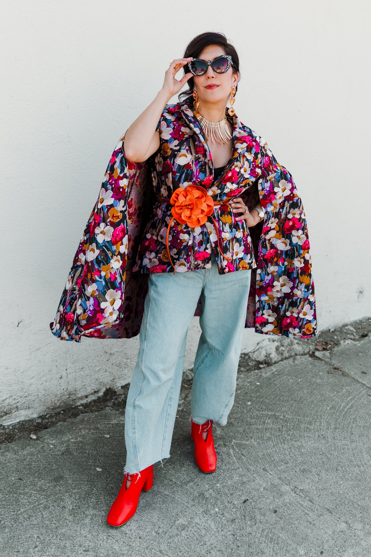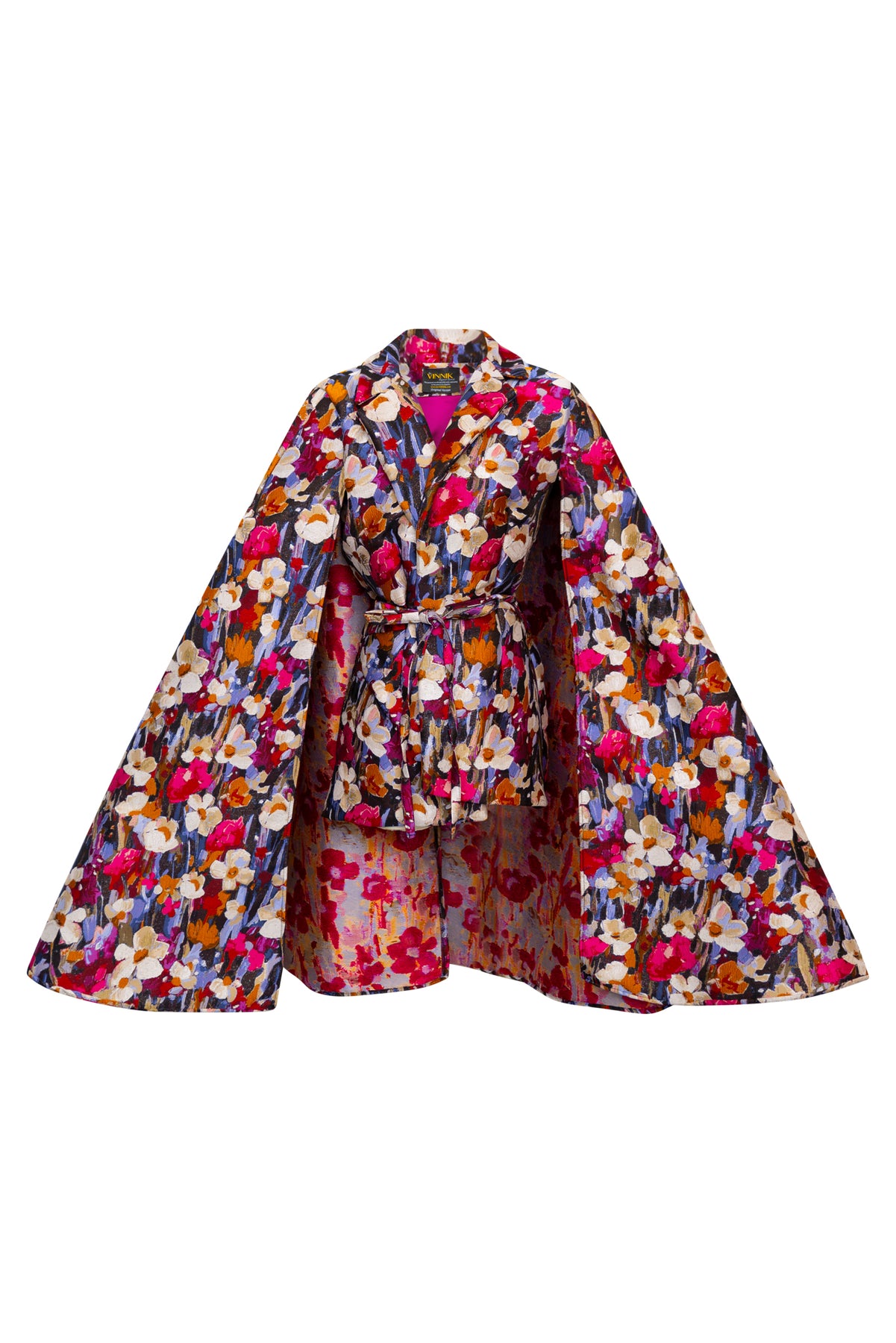 It’s a cape, it’s a jacket—it’s pure drama. Crafted from luxurious deadstock jacquard with a satin lining, this byVINNIK statement piece features an attached cape and matching belt for versatile styling. Whether belted for shape or left open for flow, the Jape guarantees you’ll turn every outing into a grand entrance.