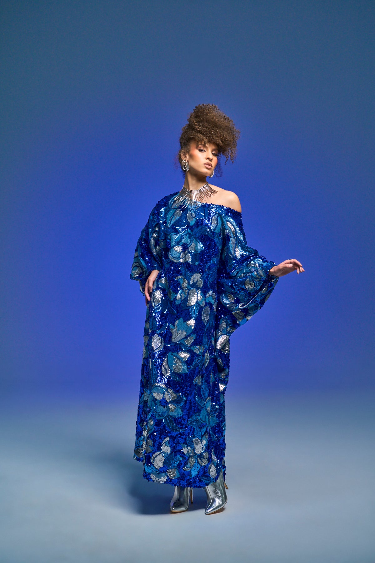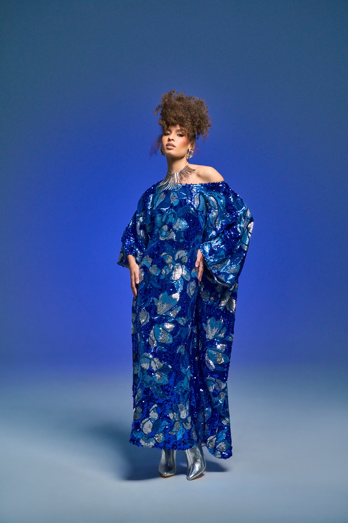 Runway Sequin Kaftan in "Disco Bouquet" (Blue)
