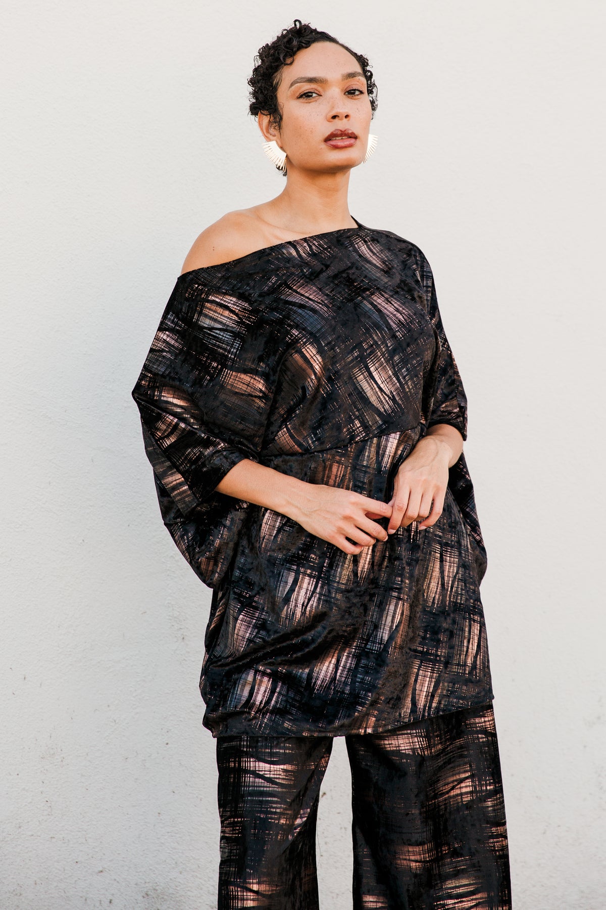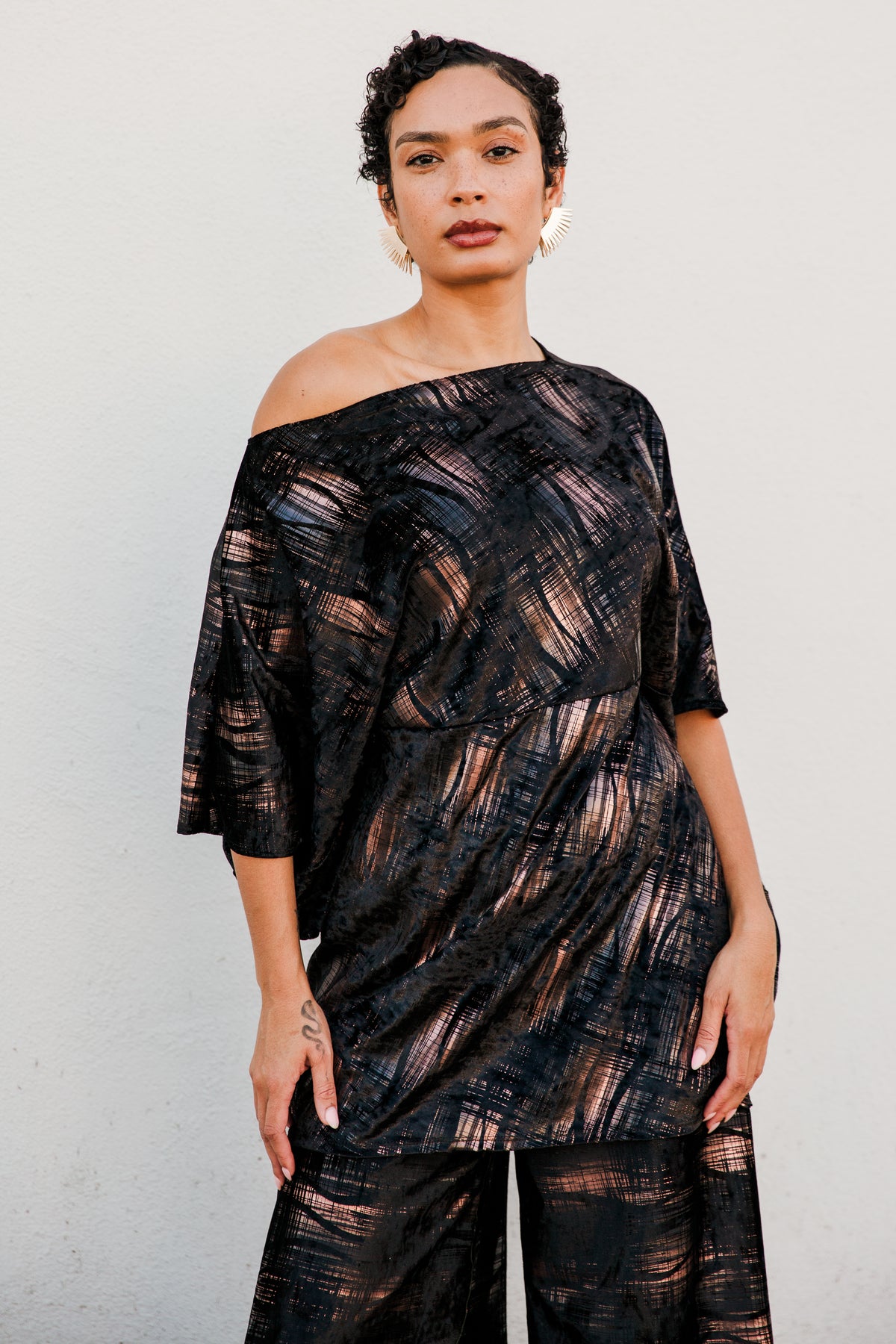 Pair with our Muse Pants for a chic, elongated silhouette or wear it solo as a mini tunic for nights that call for statement ease. Layer it over leggings or denim for everyday glamour.