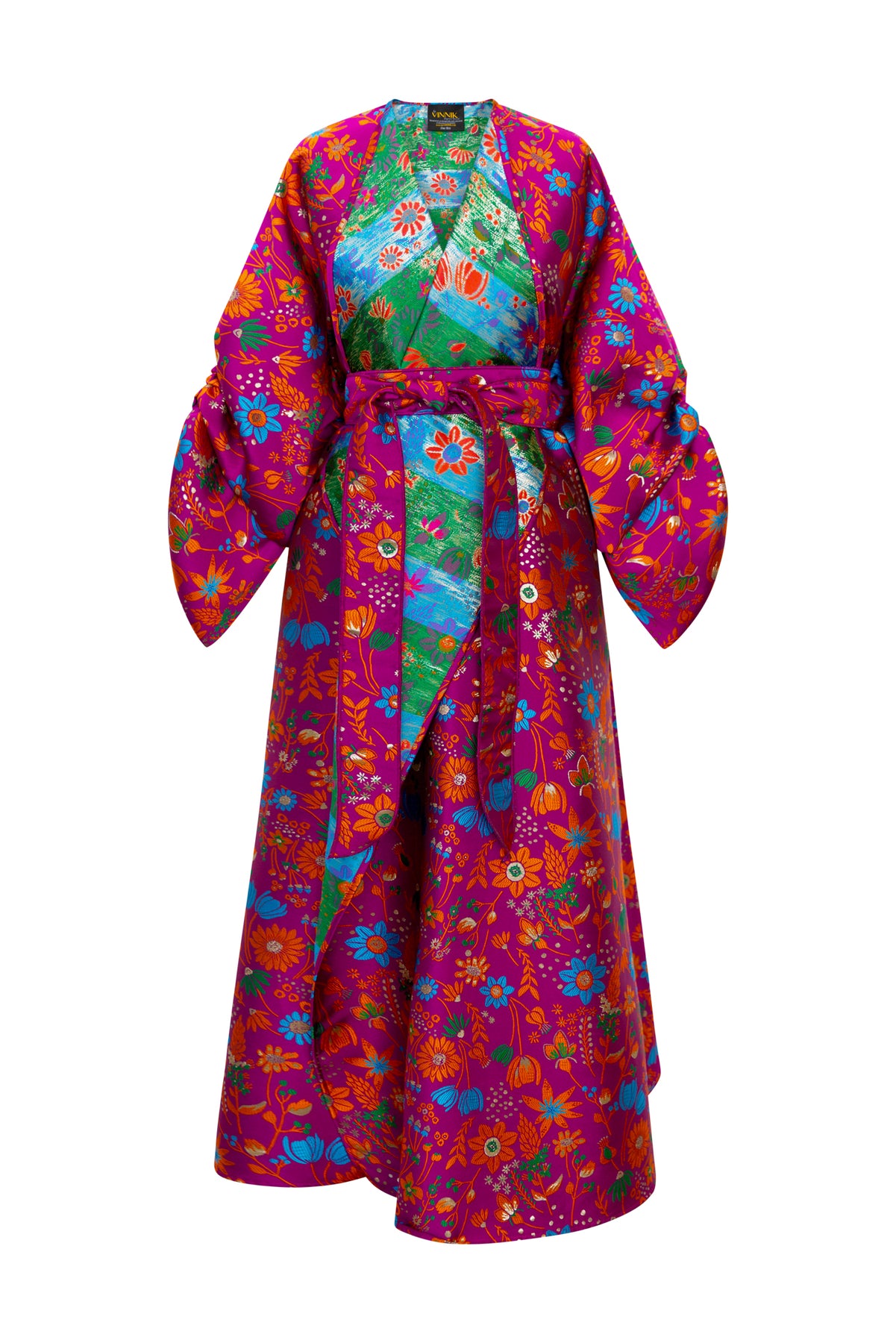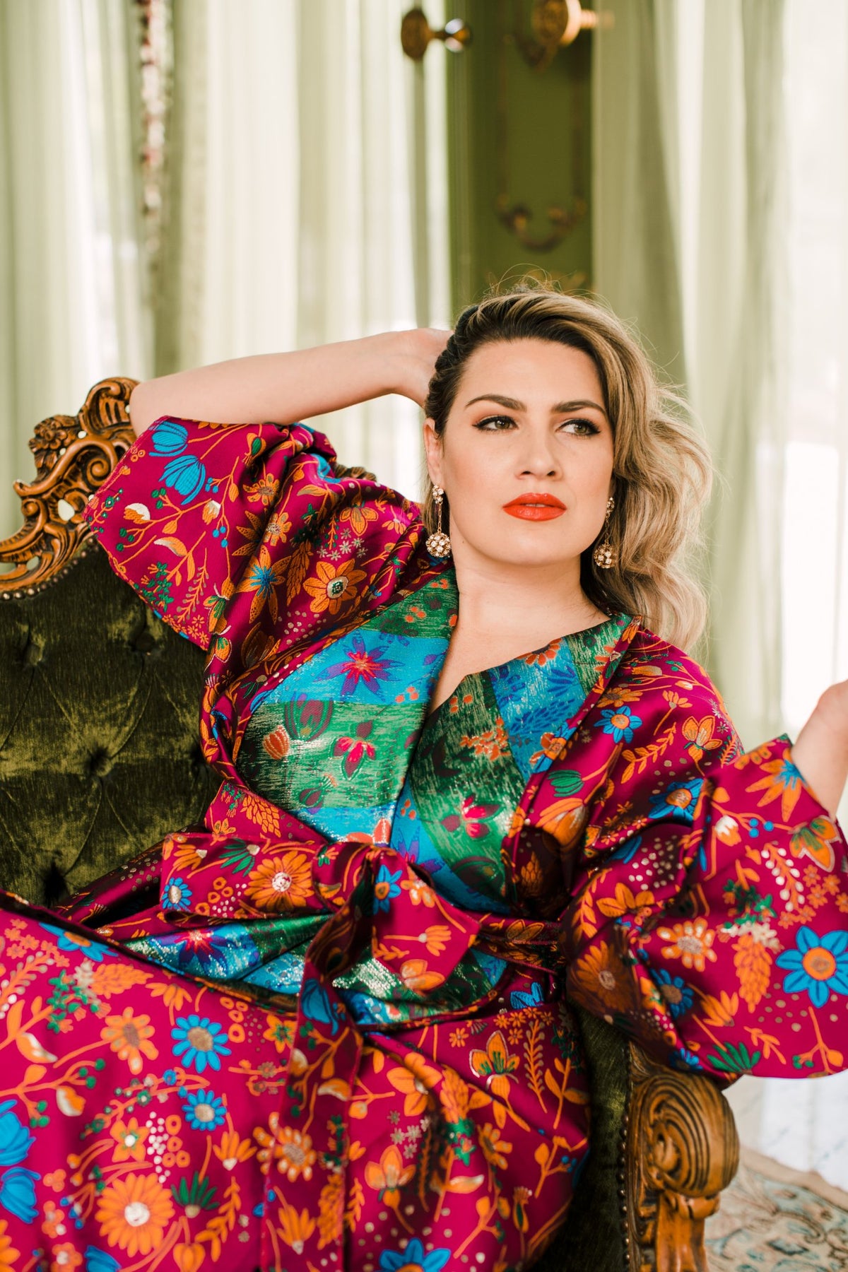 Newly re-designed with elevated finishings, our iconic "Parisian Coat" design is perfect for being seen at a black tie affair or lounging on your fainting couch from the comforts of your home. We've seen divas pair them with their favorite fashion sneakers worn open with the belt tied at the waist, over gowns, to the store, and on Hollywood red carpets. You'll love the wide lapels with the deliciously decadent ruched sleeve. This design was inspired by Parisian couture made in our elaborately rich jacquards. Live out your fantasy in this show-stopping design exclusive to byVINNIK.